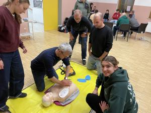 Praxis an der Puppe: Ein Schwerpunkt war das Üben der Reanimation, um im Ernstfall schnell und effektiv handeln zu können.